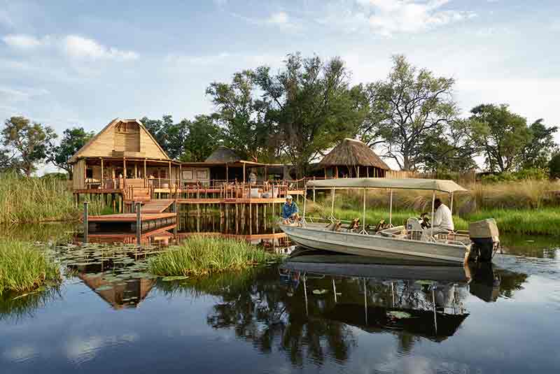 Sanctuary Baines Camp is a very small and intimate safari lodge with just six suites. Perched above the Boro River in a private concession the camp borders the Moremi Game Reserve in the Okavango Delta. The area has a great diversity of wildlife and is a popular romantic safari experience. The area offers a unique wilderness safari in Africa.