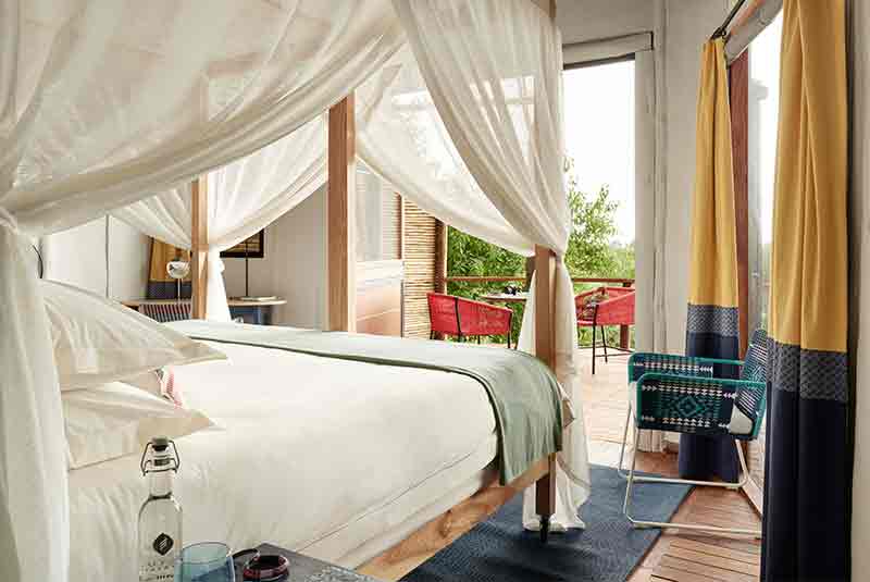 The six elevated suites have light and airy bedrooms opening out onto curved terraces overlooking the Boro River. Each luxury suite features a private viewing deck with Star Bath and four-poster Sky Bed swathed in mosquito netting. The four-poster beds are fully mobile and can easily be wheeled out onto the private wooden deck. For the ultimate indulgence, guests can enjoy a Star Bath on the deck. Each room is equipped with a hairdryer, ceiling fan, in-room safe, minibar, and mosquito nets. En-suite facilities include an indoor shower and double vanity.