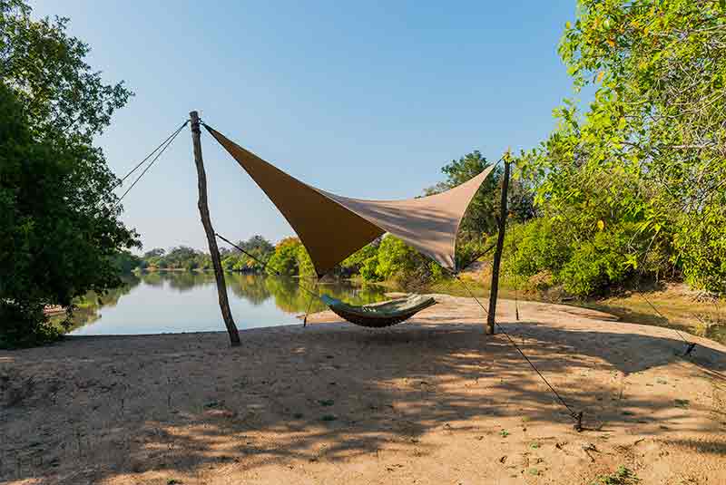 The lagoon is a magnet for the predators that lie in wait and guests can enjoy sightings of Lion, Leopard, Hyena, Cheetah and occasionally Wild Dogs. The main guest area of the camp comprises an infinity swimming pool, boma area. lounge and double hammock for relaxing between safari game drives.