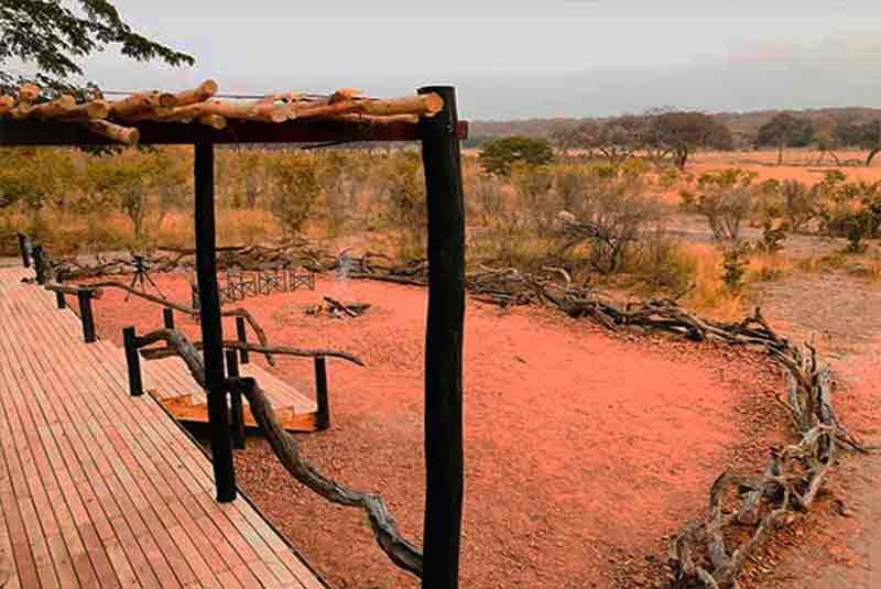 The central lounge, bar and dining room area has a beautiful wooden deck with sweeping views over the surrounding plains. Below the deck is the fire pit and entertainment area.  Entertainment is regularly organized in the form of a local group from Deka called Ingonyama. These creative actors do amazing impersonations of wild animals and traditional dancing.