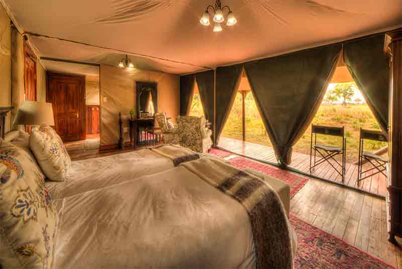 Kadizora Camps accommodation consists of four standard tents and nine luxury tents, each one positioned to provide privacy and iconic views of Africa. Tents are spacious and furnished in a classic style ensuring that time between activities is spent relaxing comfortably. Each has an outdoor decking and secluded views. The tents have an en-suite bathroom with a feature bath and double vanity basins.