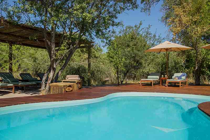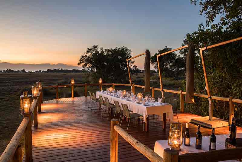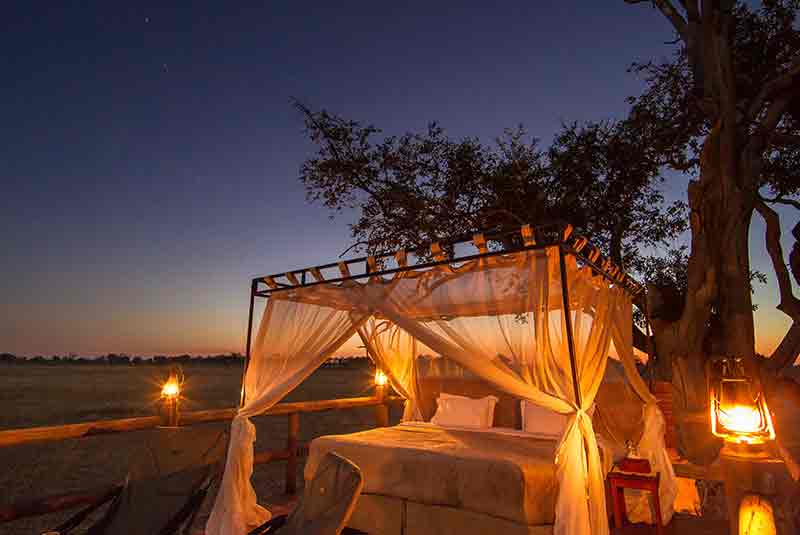 There is also a “sleep out deck” at Kanana Camp where guests can pre-book a night out under the stars. Situated quite a distance from the camp itself you are truly out there alone. A guide is close at hand at night. The deck is raised quite high and the views all around are quite stunning with the sun setting behind the deck and waterholes to the right of the deck.