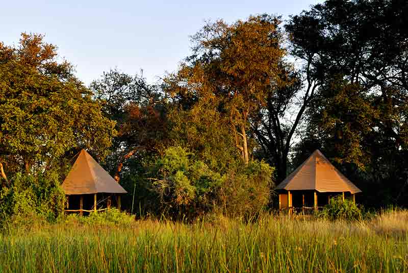 As the floods come down from Angola guests can watch as the water rises around the islands.Game sightings are excellent and drives or walks in the open plains yield fantastic sightings of Elephant, Buffalo, Lion, Leopard, and other smaller wildlife.