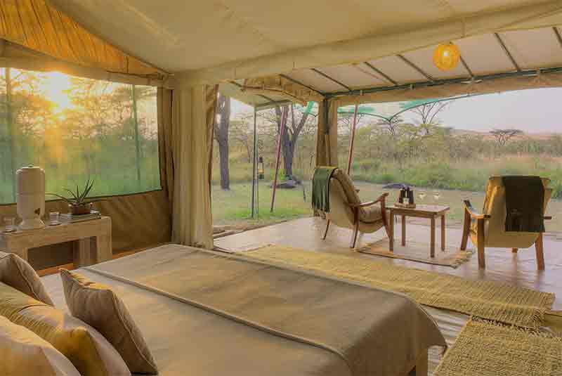 Kicheche Camps 6 luxury tents are set well apart ensuring great privacy and provide a deliciously isolated feeling to each individual tent. Each tent is very spacious with canvas walls that are rolled up each day giving an open and peaceful feeling to the area. At night the canvas walls are closed and the bedroom feels very cozy.