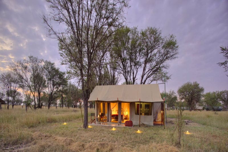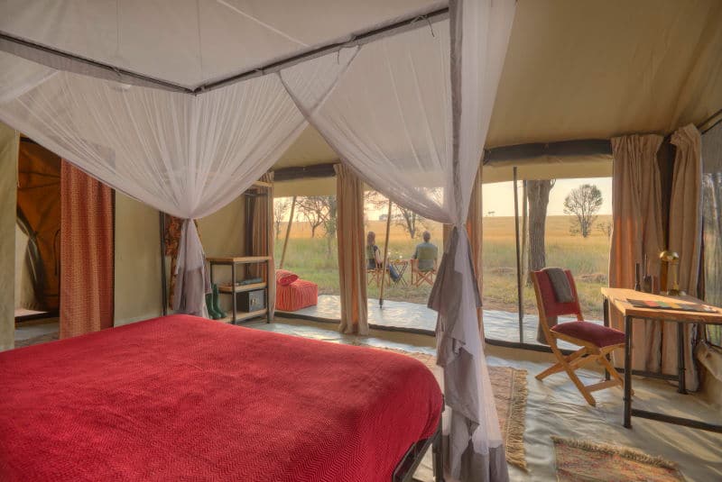Kimondo Migration Camp is a rustic yet comfortable camp and is the sister camp to Olakira and Ubuntu. Like its sister camps, Kimondo moves between two different locations. There are eight tents at Kimondo Camp, five to one side of the main area and three to the other. All the tents are spacious and have their own en-suite bathrooms.