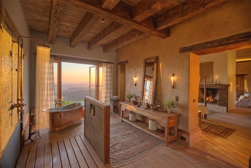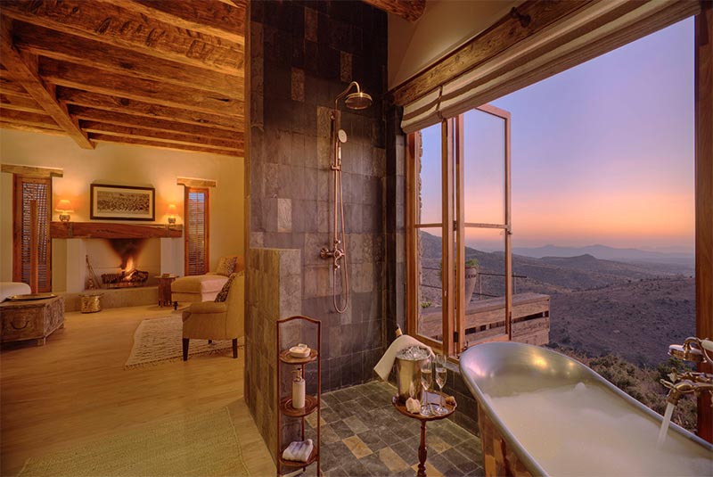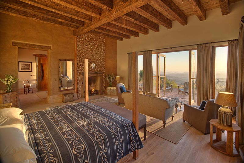 All the rooms are very spacious with an indoor fireplace and the en-suite bathrooms have a rain shower and free standing bath. The floor to ceiling windows provide incredible views for bath tub game viewing while you soak.