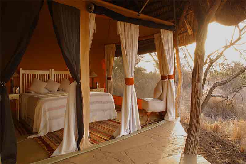 The camp has 15 safari tents that have been well spaced into the bush affording great privacy for each room. Four of the tents have been built as family units that sleep 4 guests each. While the design of each is quite simple they are all very comfortable with a thatch roof, massive beds and mosquito nets.