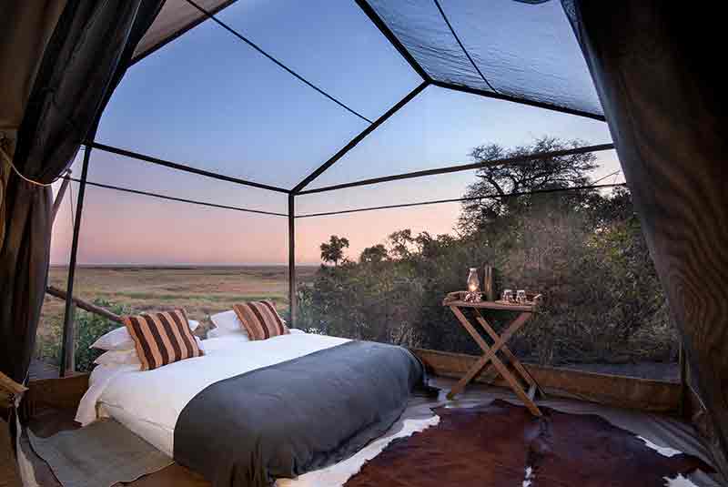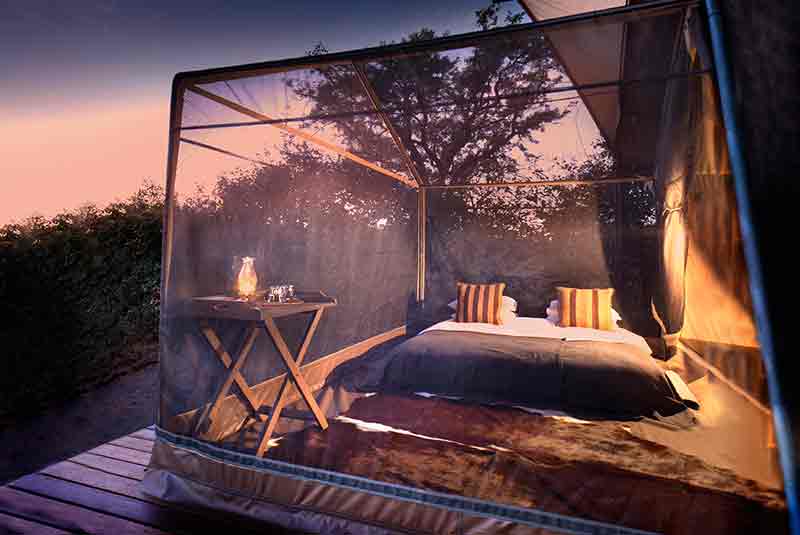 With only 6 tents, the camp has an intimate atmosphere and ensures a personalized service for each guest. Each tent is firmly rooted on the ground, giving that extra level of connection to nature. Each room has en-suite bathrooms with flush toilets and al fresco bucket showers. Each room has a “star suite” and a gazebo extension where beds can be moved at night to give the experience of sleeping beneath a blanket of glimmering stars.