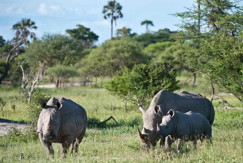 Predator sightings are frequent, especially Lions with Hyena and Leopard sighted regularly. Large herds of Buffalo, Giraffe and varied antelope species all ensure a rich variety of game viewing. Chiefs Island is also home to White and Black Rhino, the only place in the Okavango where you will find these prehistoric animals.
