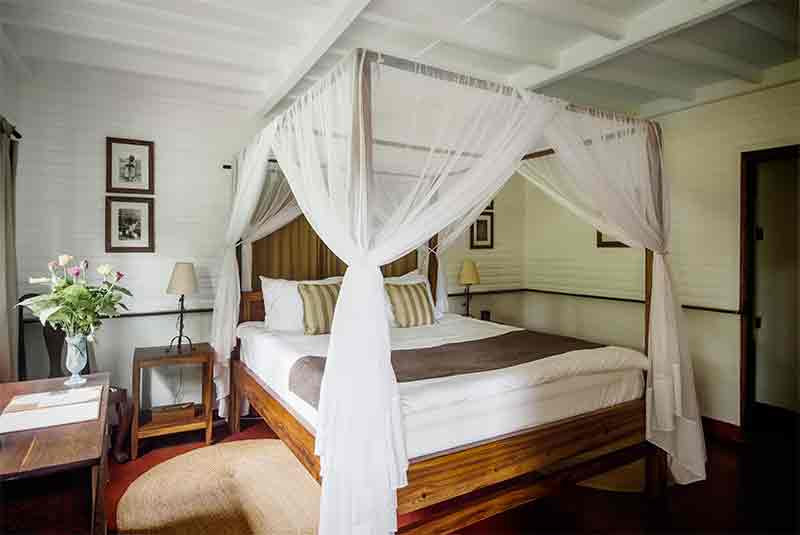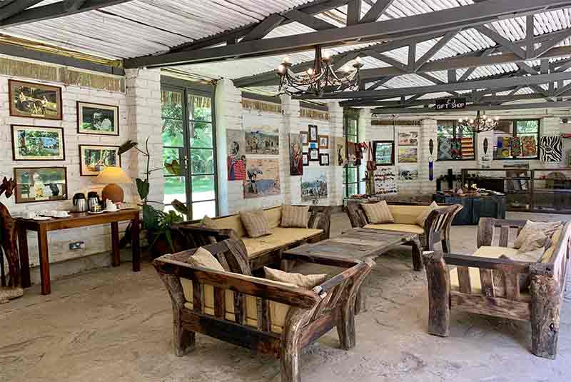 On arriving there is a warm welcome from the staff and the main reception area has photography from the earlier days as well as a small curio shop filled with locally made curios’. The grounds of the lodge are stunning, lush green lawns with large old trees’ dominate providing welcome shade and a very peaceful environment for relaxation.