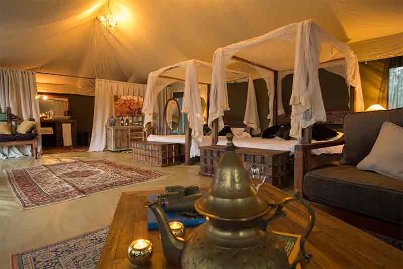 With just 10 tented suites, one honeymoon suite and a family suite the camp combines luxurious accommodation with excellent cuisine and service. Each suite has been elegantly designed with spacious interiors and a warm East African atmosphere.