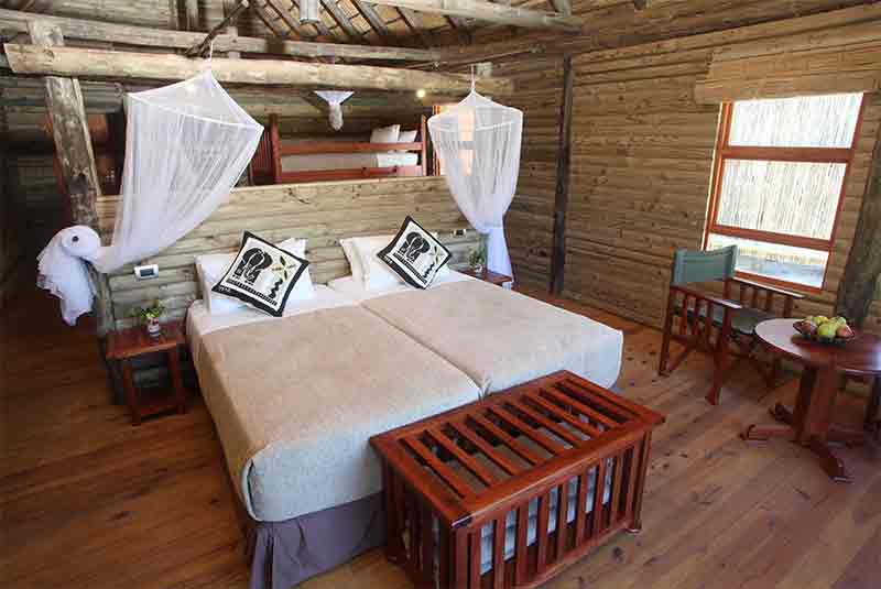 Nata Lodge has 22 luxury thatched chalets on elevated platforms decorated in a rustic African style. All the chalets have an en-suite bathroom with indoor bath, outdoor shower and air conditioning. Two of the chalets can accommodate a family of 4 and one has been designed for the physically challenged.