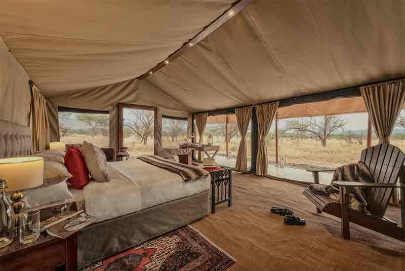Nimali Central Serengeti lies at the base of a small hill overlooking the Serengeti plains. Each tent suite has beautiful views and a wide deck for armchair game viewing. Hot air balloon safaris can be pre booked and two tents are connected for families on safari.