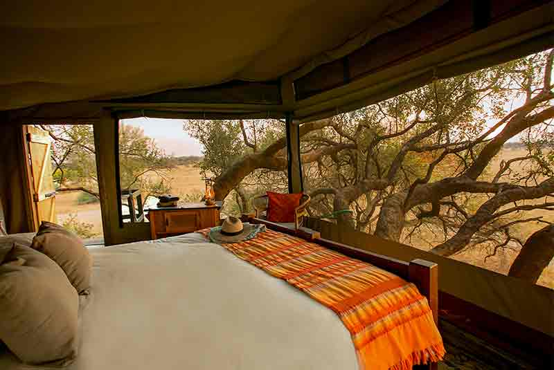 The Dove’s Nest is built to accommodate two people and the spacious and comfortable bedroom is reached by a wooden stairway. The door can be closed and locked for peace of mind. Your guide will arrive in the early morning and drive you back to camp for breakfast.