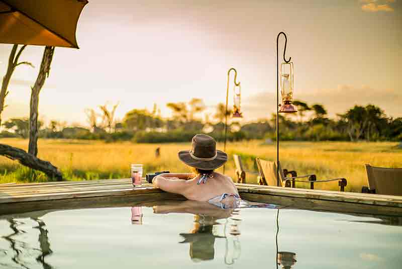 Exclusive dining with your family or friends makes this location incredibly memorable. Deluxe tents are spacious and cater for all your needs and dreams on safari in Africa. There are two family tents which can accommodation two adults and two children in full size comfortable beds. Each room has its own en suite bathroom – indoor bath, inside and outdoor shower and hot water all day. All rooms are mosquito-proofed and have fans for your comfort during the warmer months.