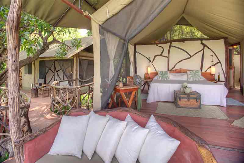With just 8 luxury treehouse tents that are both spacious and bright the camp is intimate and prefect for a quiet safari. Six of the tents can be made up as double or twin and raised off the ground have stunning views from the deck at the front. The deck can also be used for sleeping – just ask the staff to arrange it.