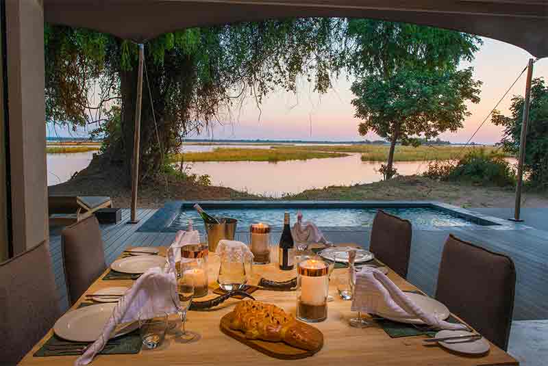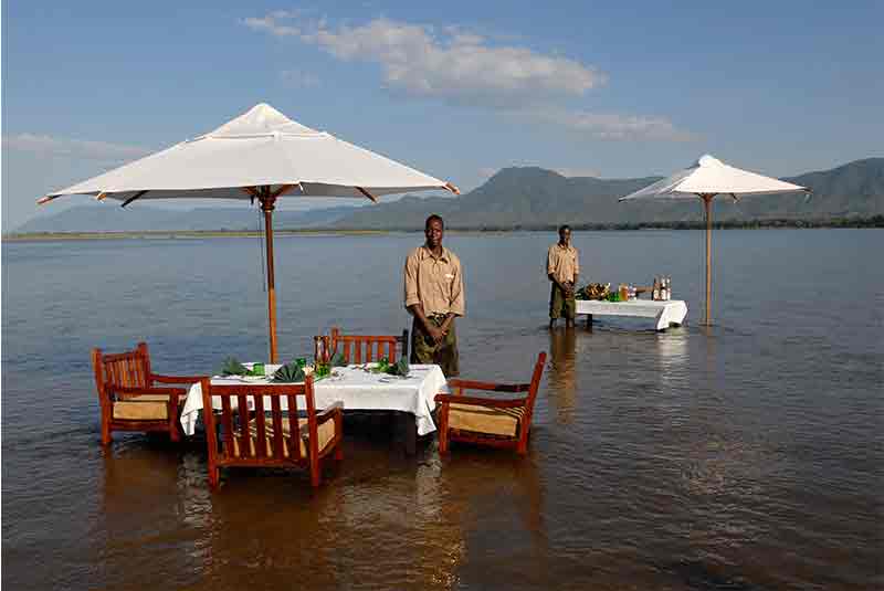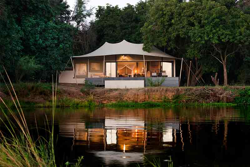 Sausage Tree Camp is the most luxurious safari camp in the Lower Zambezi. Luxury tents lie discreetly amongst the trees’ with fantastic river views and an endless parade of wildlife through the un-fenced camp. All guests receive a private guide and vehicle for all activities.