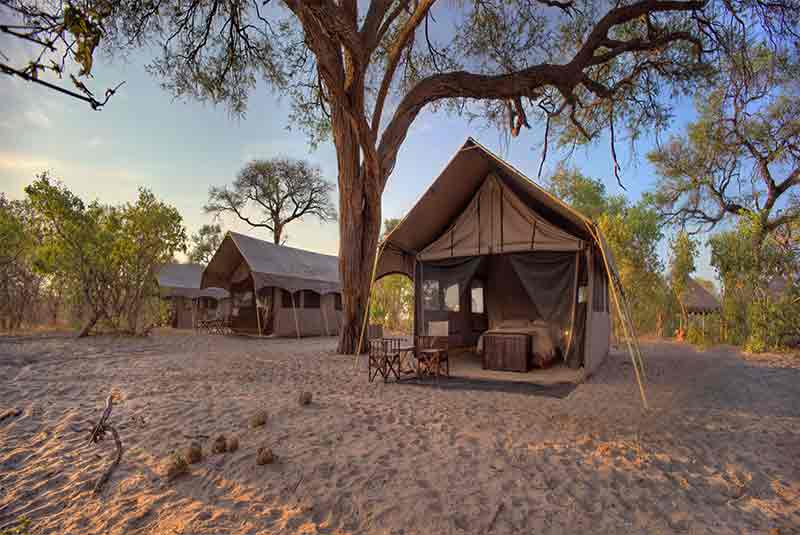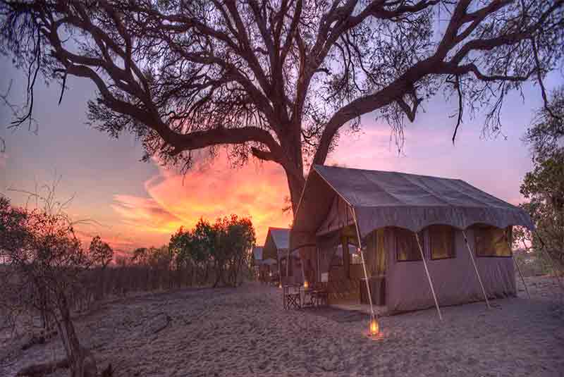 Savuti Under canvas offers an adventurous mobile camping experience combined with luxury Meru styled safari tents in semi-permanent camps. The concept makes use of a number of different private campsites in the Savuti area of Chobe National Park.