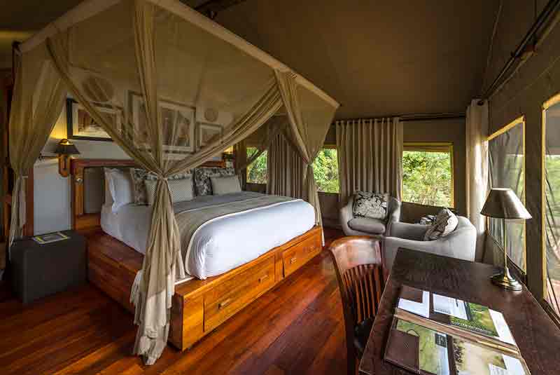 Seba has just eight luxury tents with two that have been designed specifically for families with interconnected rooms. Children are taught bush cooking as well as photography lessons. The two family tents can accommodate either four or six people and have their own private plunge pool as well as parent and children’s en suite bathrooms.