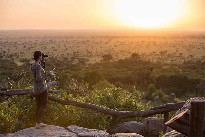 Possibly the best place in the entire camp is the lounge area that has stunning views across the woodlands and plains of the Serengeti. The canvas sides of this area are usually rolled up making it a very welcoming place to relax in between game drives. In a small cleft of the hills lies the dining area that is also quite open to let in cool breezes and bring the views right inside. Breakfasts and dinners are served here at individual tables.