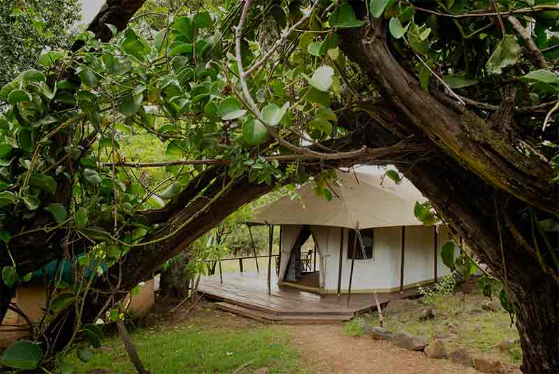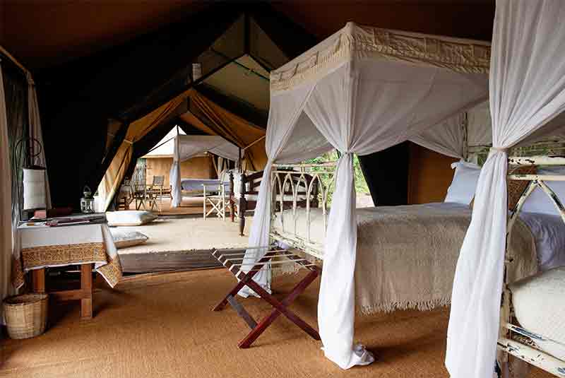 The six guest tents at Serian are set amongst the dense bush and rocks above the river and the Masai askari escort guests around the camp after dark. Each tent has been built onto raised cement and wooden decks ensuring a view from each over the river.