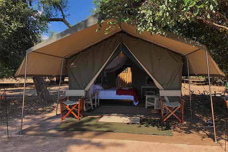 The camp is neither mobile nor permanent as it is dismantled and re-built each year for the safari season in the same location and is open from April/May through to October/November. Paths lead from the guest tents to the main guest area which is a canvas structure that has stunning views over the river. There is a comfortable and informal lounge, bar area and a tea and coffee station. The camp has it’s own system for producing safe drinking water.