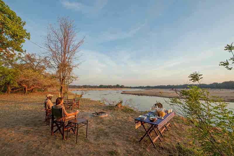 Takwela Bush Camp lies at the confluence of the Luangwa and Mwaleshi Rivers and has beautiful views over a pod of resident Hippo in one of the deeper pools. The area is known as the Chitukuko which means “place of development” in the local Tumuka language.