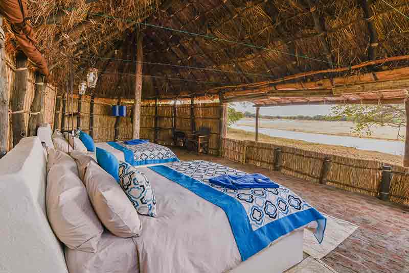 Takwela accommodates just eight guests in four en-suite chalets that have been built with local materials and African ingenuity. Two of the chalets have double beds while the last has a king size bed. With over 50 kilometers of private river frontage the chalets have panoramic views out over the river, the local Hippo and a huge diversity of animals that come to the river for water.