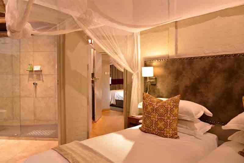 Each of the six split-level Safari Suites is fully air-conditioned with a master bedroom upstairs that has a superb vista over unspoiled bushveld and spectacular African sunsets. The Safari Suites are all en-suite, with a spacious lounge and a private patio overlooking a small waterhole that attracts bushbuck, warthog and a rich variety of bird life, and are within walking distance from the restaurants, activities and facilities of Victoria Falls Safari Lodge. All bedrooms are equipped with 2 three-quarter beds that can be converted to King size beds.