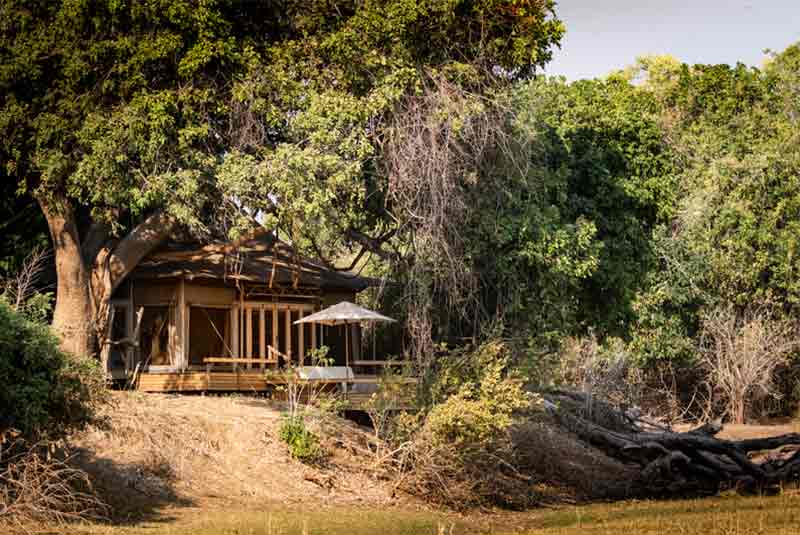 Chikwenya is one of the most exciting new camps in Zimbabwe and has literally just opened its doors. The camp is designed to take advantage of the scenery – each luxury tent is nestled within the shadows of a Natal Mahogany tree. Through the gauze doors of your tent – which is raised on wooden decking – you will have fantastic views of the Zambezi River. The rooms are designed with the purpose to enjoy the views as well as surround yourself with the stunning scenery. The décor is mainly handmade locally, with a naturally earthy palette.