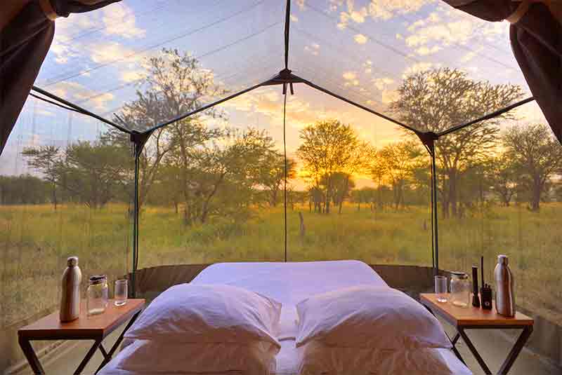 Olakira Migration Camp follows the massive herds of wildebeest to two spectacular locations in the north and south of the Serengeti National Park. Olakira’s tents have been cleverly designed so that a portion of the tent boasts a 270-degree view from beneath a meshed net area. Staff will offer each night where you would like to sleep.