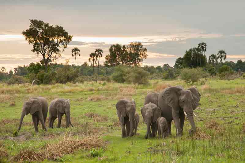 The Chitabe concession of 69 000 acres is divided by the Gomoti Channel. This makes the Eastern half to be characterized by grassy floodplains which divide the channel from the Acacia and Mopane woodlands. The Western half of the concession is typical Okavango Delta habitat of clear streams lined with papyrus and palm covered islands.