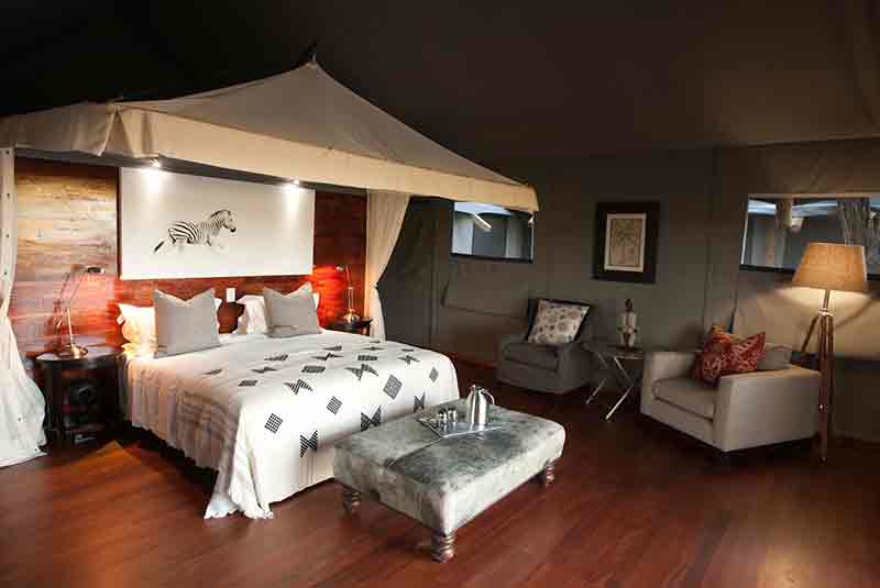 With just five tents that have all been raised on wooden decks makes Chitabe Lediba both intimate and exclusive. En suite bathrooms have both indoor and outdoor showers offering stunning views of the floodplains and lagoon. Two family units have adjoining decks and for younger children the other has an adjoining corridor. Both family units have double en suite bathrooms. Tents are luxurious and wheelchair friendly A private deck with chairs and yoga mat also has views of the lagoon.