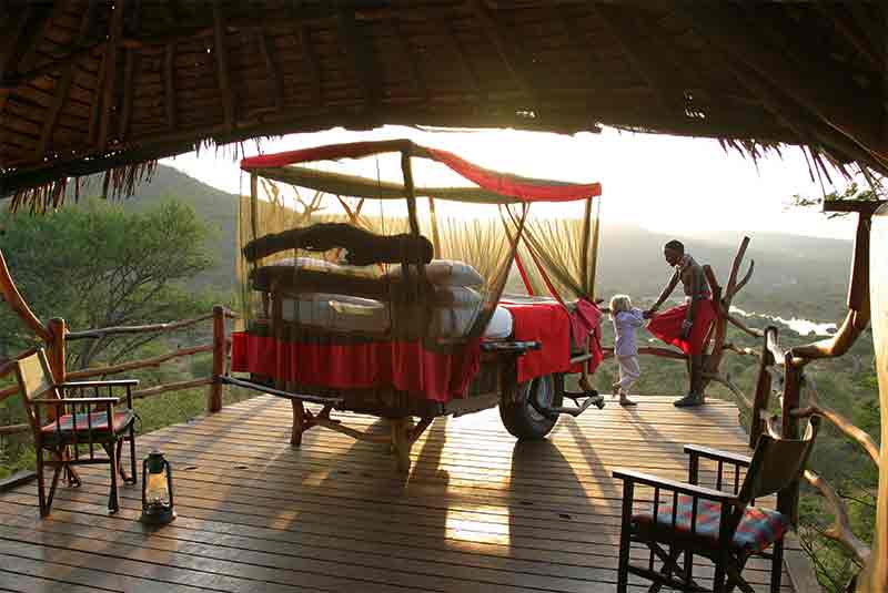 If you have never heard of a star bed it’s a bed on wheels with mosquito net that can be moved from the bedroom out onto the deck so you can sleep out under the African stars.