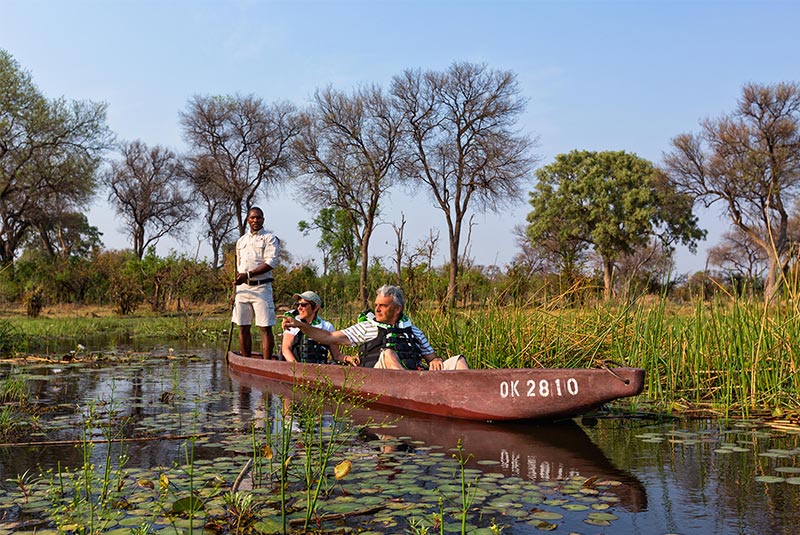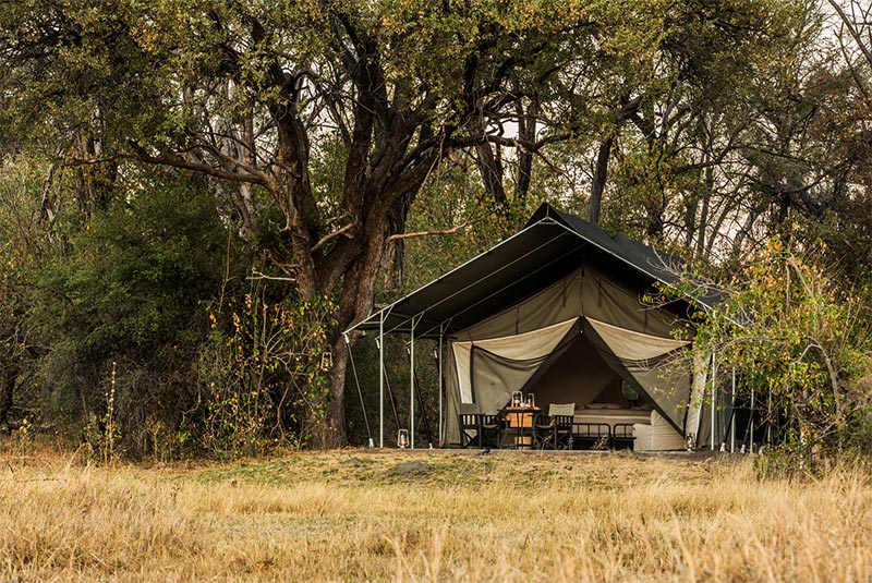 The camp looks out onto one of the crystal clear channels with Sycamore Fig trees providing plenty of shade for the tents. The permanent waters of this area ensure excellent year round game viewing and is a good choice for bookings during the safari shoulder season.
