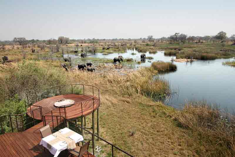 Linked to the rooms by a network of pathways is a three-story communal area overlooking the river, where game is frequently spotted. Along with a bar, a partially undercover dining room, comfortable lounge, and viewpoint on the top floor. There is a campfire off the main dining deck for after dinner drinks.