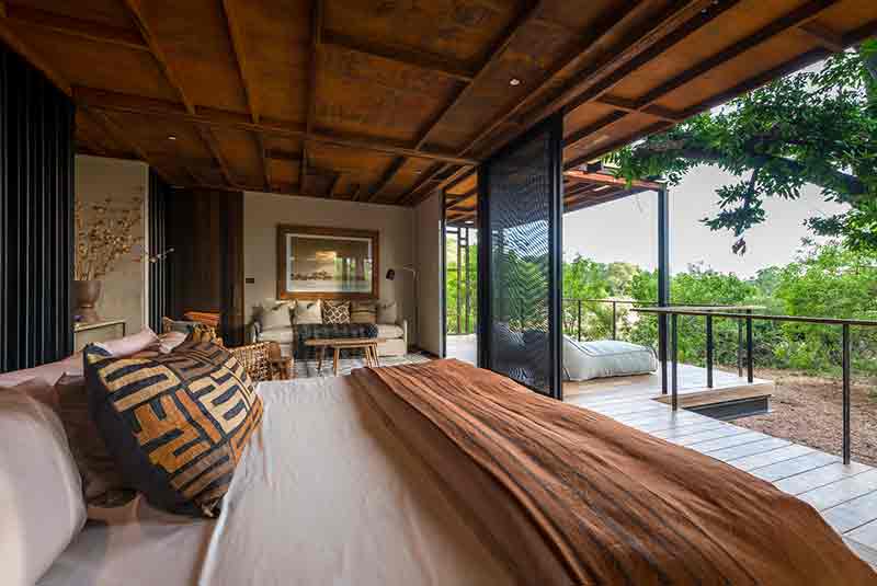 Each tent is canvas sided raised on wooden decks and sandy paths that connect tents to the main area. Each tent has an en suite bathroom with both indoor and outdoor showers. Spa treatments are available on request and availability of a therapist. An infinity pool also overlooks the lagoon with umbrellas and sun loungers, an idyllic place with a good book between game drives.