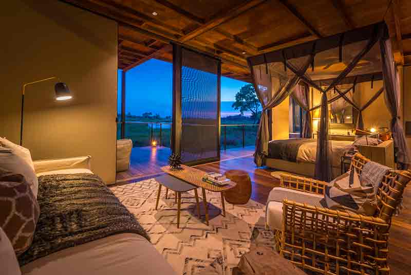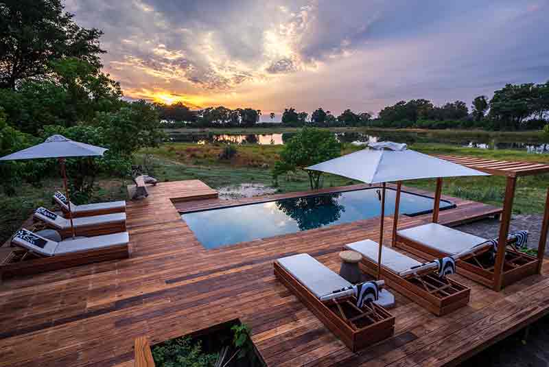 With just eight tented suites and one family unit the lodge that has its own private pool this is an elegant lodge that provides a luxurious finish all around. The whole camp and tents overlook the lagoon in front of the camp making for exciting game viewing from the main area or your private deck during the hotter parts of the day.