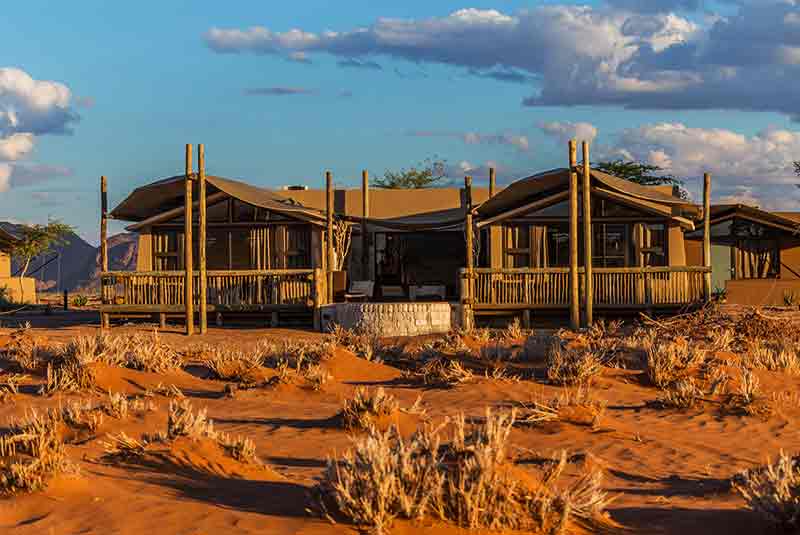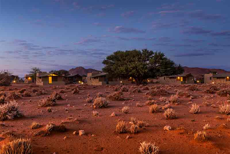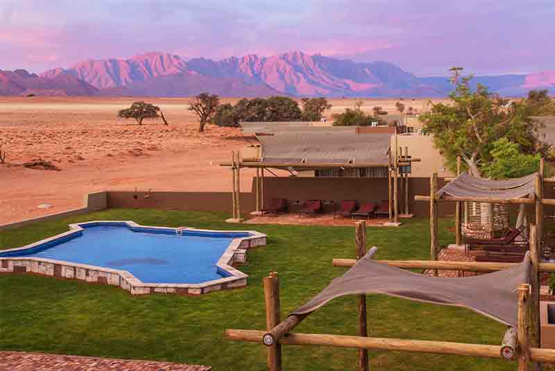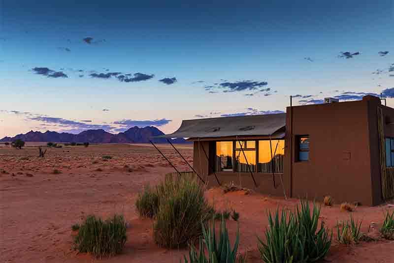Sossusvlei Lodge lies adjacent to the oldest desert in the world. The lodge offers a luxurious retreat in this very popular tourist attraction area in Namibia. Shaded by camel thorn trees, the lodge blends in perfectly with the incredibly scenic desert surrounds.