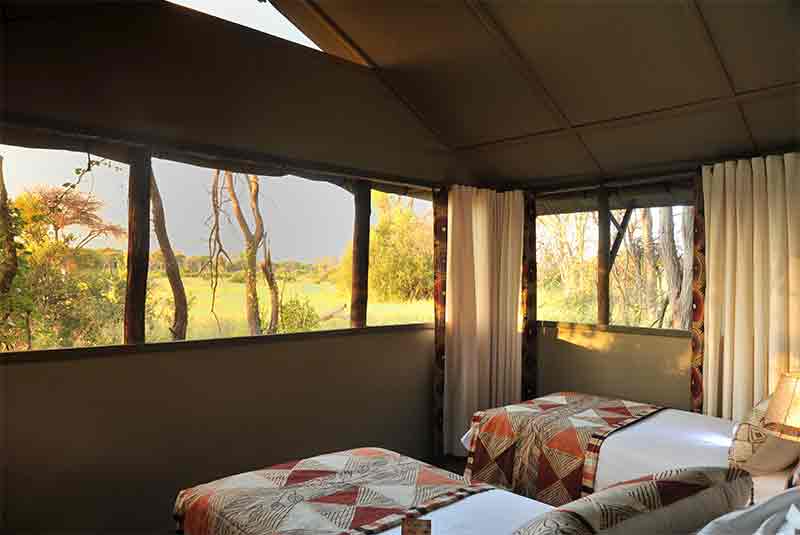 Bedrooms are individually decorated and furnished with Zimbabwean teak furniture. All the rooms are mosquito-proofed and have fans for warmer days. The bedrooms are linked by a dining room and outside veranda, complete with sparkling splash pool. The family tent has an outside bathroom and inter-leading children’s room which can accommodate two children. Combined, 6 adults and 4 children can stay at Tom’s Little Hide. Extra adults can be accommodated if necessary.