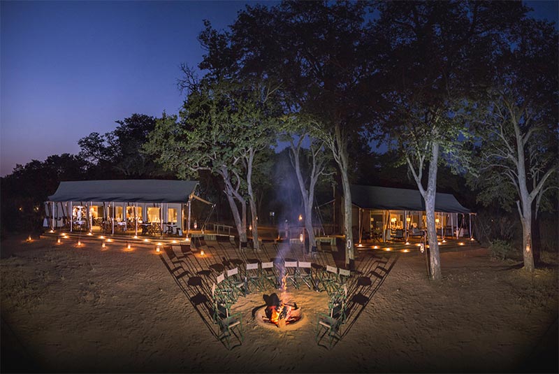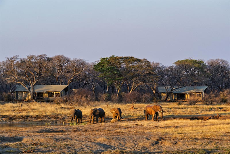 Located in the far South East of Hwange National Park, Verney’s Camp overlooks a huge floodplain that’s lined with Mopane and Teak forests. The waterhole in front of the camp is a much loved drinking place for large herds of Elephant as well as other game.