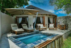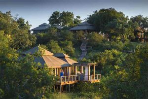 This intimate, family-friendly lodge boasts contemporary luxury accommodation in safari tents or thatched family chalets elegantly decorated with sophisticated finishes where one can awaken to the sights and sounds of the surrounding bush. Meals are are served outside on the wooden deck under Jackalberry and Leadwood trees, traditional African dinners are served around the campfire in an open-air “boma”, an experience not to be missed.
