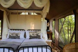 The camp has 4 Meru type guest tents accommodating only 8 guests at any one time. Each tent  has an en-suite bathroom with bucket shower that is filled on request.